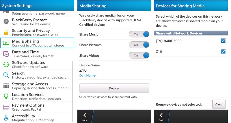 With BlackBerry10, you can easily access the video, music, and photo files that are on your phone, from other network connected devices within your home network. This is due to DLNA (Digital Network Living Alliance), DLNA is fairly automatic about everything, and if your TV or sound system supports it, you don’t need any additional hardware or peripherals to make it work.