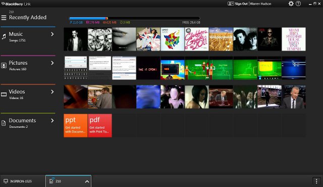 The new and improved replacement for BlackBery Desktop Manager. Works kind of like iTunes, and you can sync across your existing iTunes library. You can select the media on your computer and sync it across to your BlackBerry 10. You can do this either through a USB cable or through a wireless network. Most of the time, I just do things through wireless.